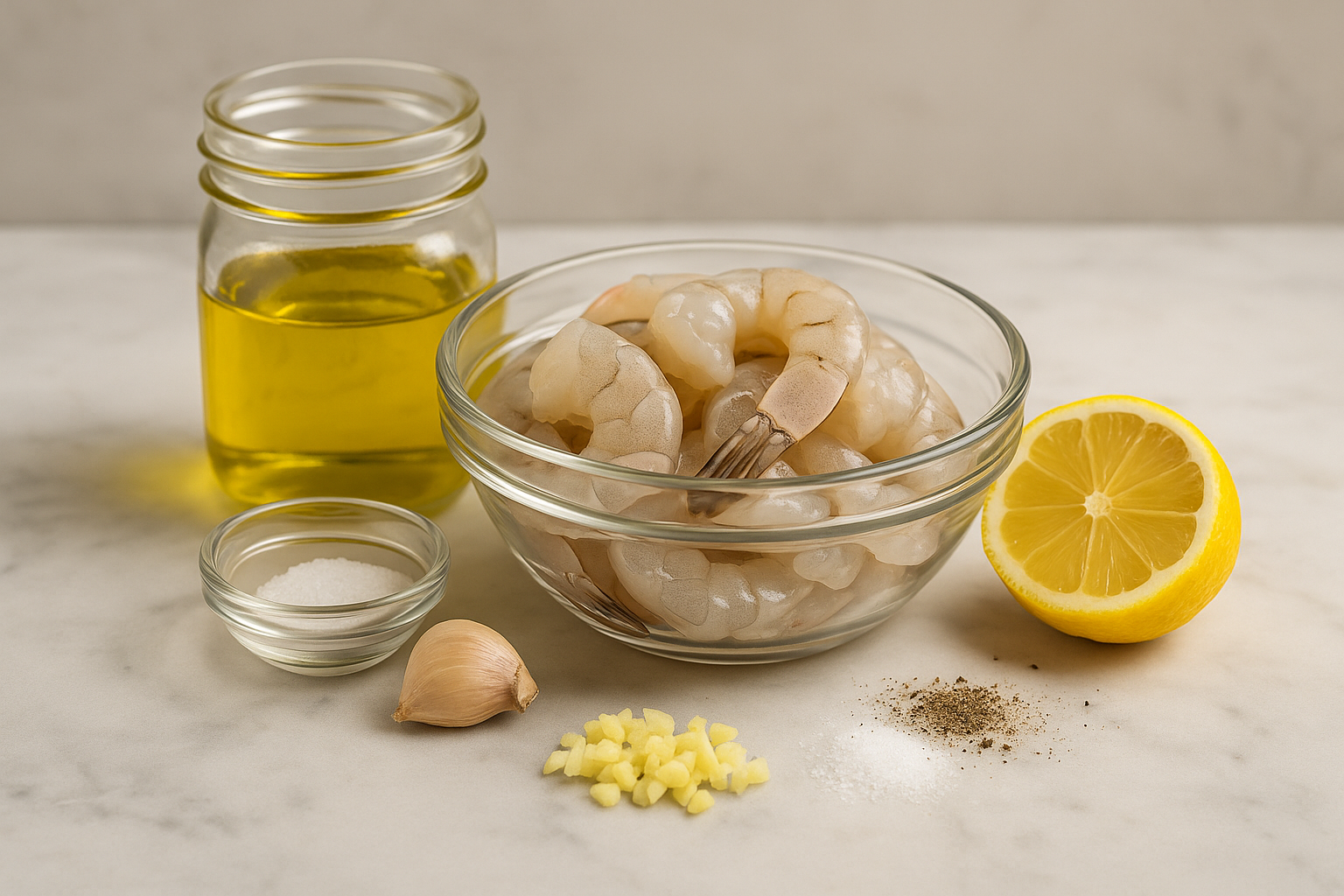 - Toss shrimp with 1 tbsp olive oil or butter, 1 minced garlic clove, lemon juice, salt, and pepper. Set aside.